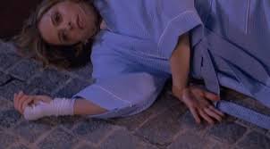 De repente Takeo voltea hacia ella, mientras Aubrey intenta escapar. Se tropieza, rompiendo su tobillo y cae sobre las escaleras. Takeo la sigue debajo de las escaleras, mientras ella gatea desesperadamente sobre ellas.
